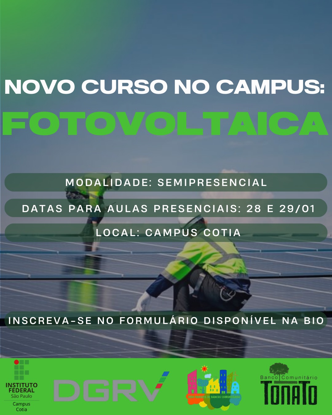 IFSP campus Cotia oferta mais um novo curso : Noções em Energia Solar Solidária