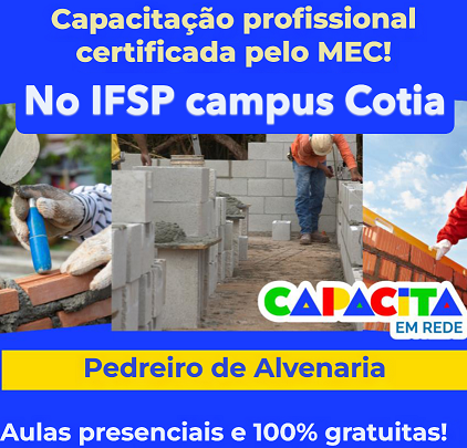 O Instituto Federal de São Paulo (IFSP), por meio do campus Cotia, está com inscrições abertas para o curso de Pedreiro de Alvenaria, ofertado pelo programa Capacita, iniciativa voltada à formação profissional e geração de oportunidades de trabalho.