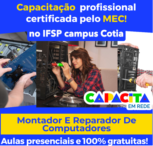 O Instituto Federal de São Paulo (IFSP), por meio do campus Cotia, está com inscrições abertas para o novo curso de Montador e Reparador de Computadores, pelo programa Capacita, voltado à formação profissional na área de tecnologia da informação. A iniciativa tem como objetivo capacitar a comunidade em geral para atuar na montagem, manutenção e diagnóstico de computadores, atendendo à crescente demanda do mercado por profissionais qualificados no setor. O curso oferece uma oportunidade de desenvolvimento técnico acessível, especialmente para quem busca inserção rápida no mundo do trabalho ou deseja aprimorar conhecimentos na área.